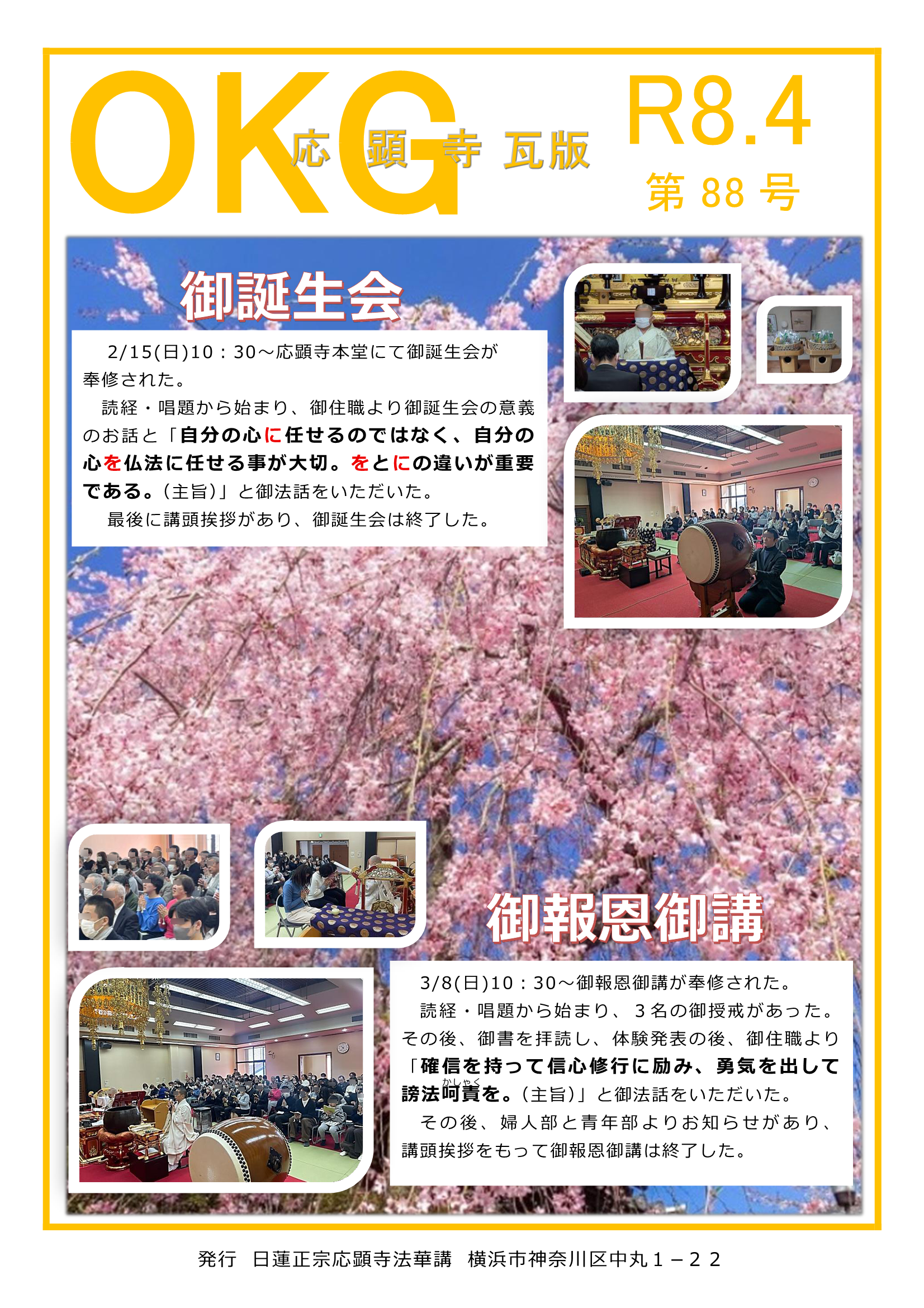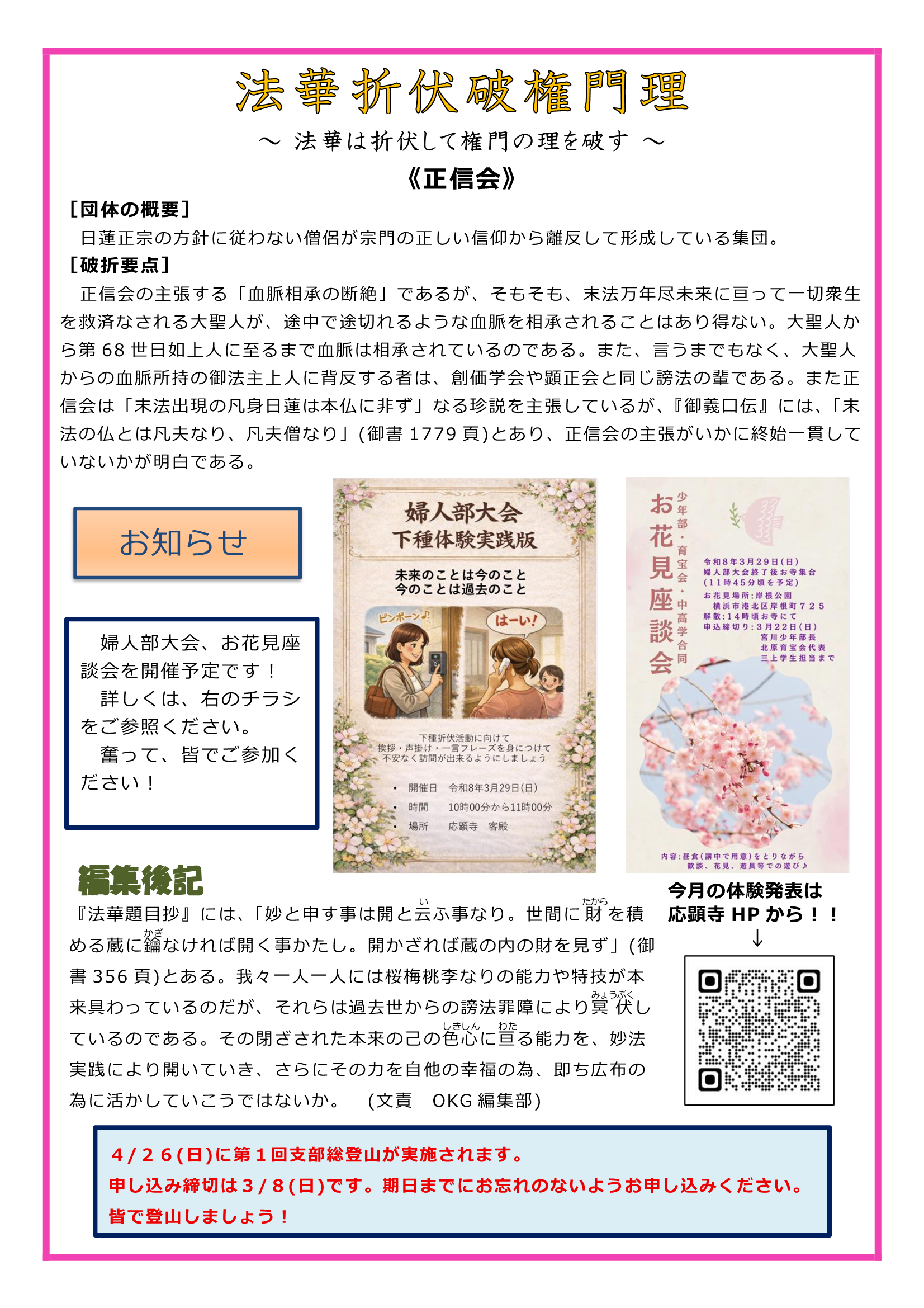令和8年(2026年)4月度 御報恩御講拝読御書